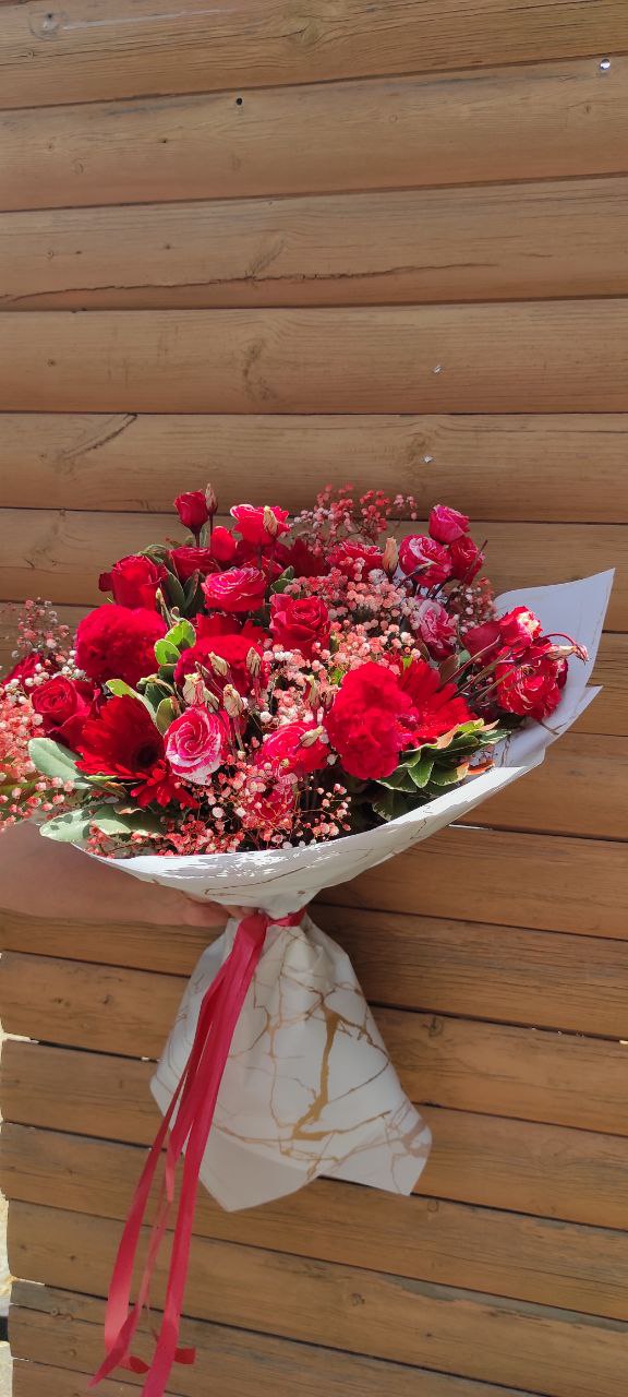 מהפרחים: ורדים, פרחי ליזי כרבולות.