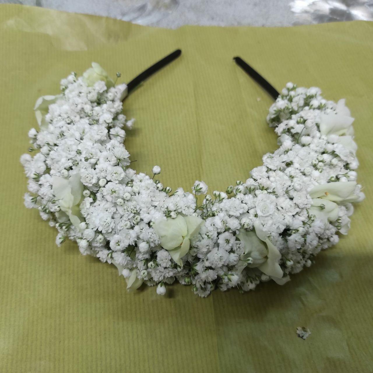 זר לראש- קשת פרחים לבנים ליום הולדת