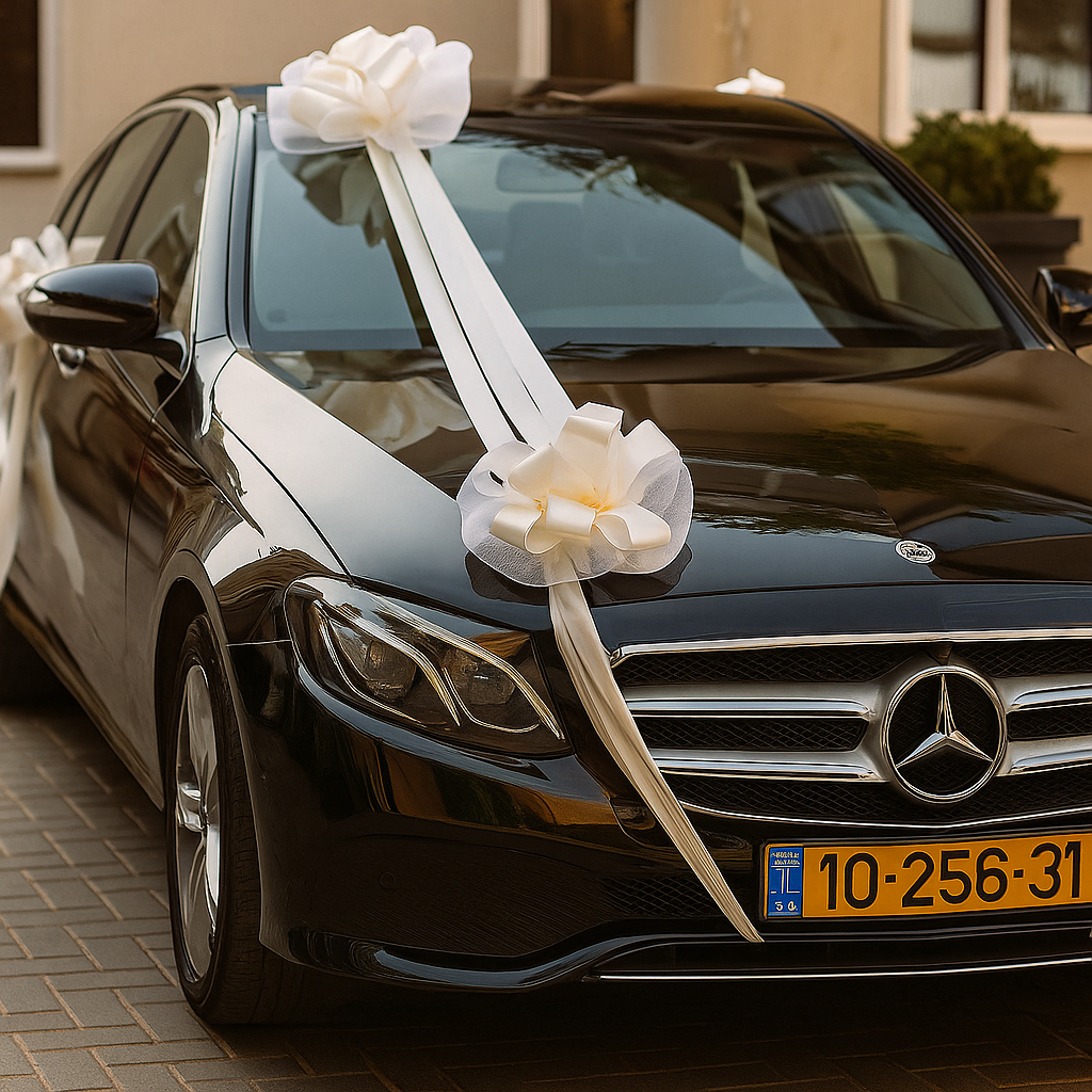 קישוטי רכב מעוצבים באלגנטיות, המוסיפים טאץ’ רומנטי ומרגש לכל חתונה או חגיגה.